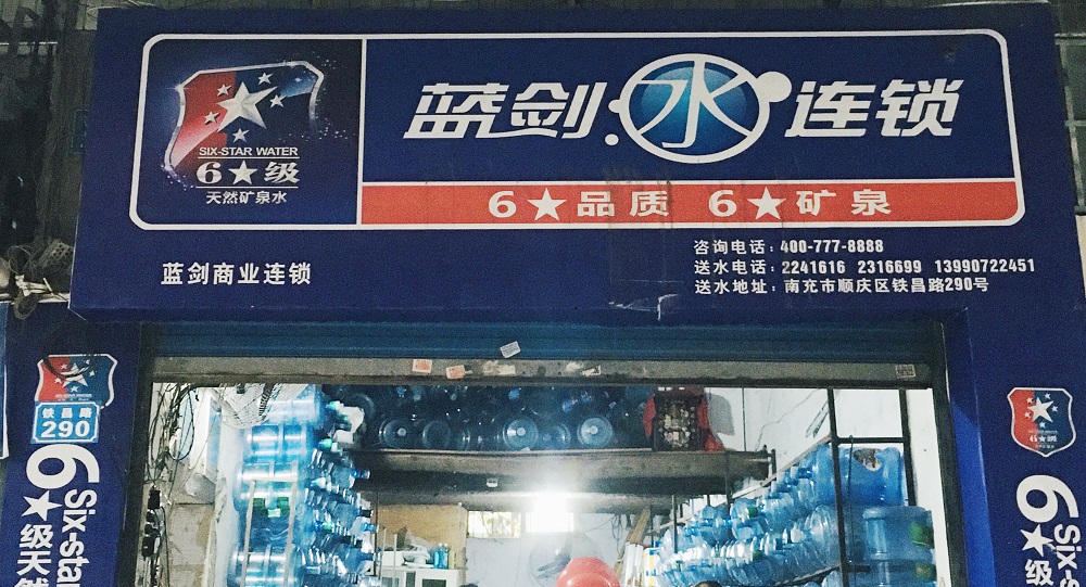 代理品牌:天然礦泉水系列(藍劍飲品集團南充地區總代理),包裝飲用水系列(浸水、金品、水之源、淩雲山、山坪道、冰樂氏),瓶裝水系列(冰川時代Q1、農夫山泉、怡寶)等…